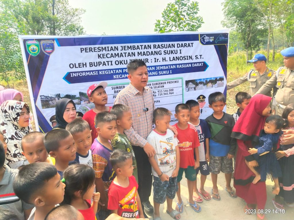OKU TIMUR,SKI-Bupati OKU Timur Ir. H. Lanosi, M.T. meresmikan Jembatan Rasuan Darat yang menghubungkan antara Desa Rasuan dan Desa Rasuan Darat Kecamatan Madang Suku l,Selasa, 29 Agustus 2023.