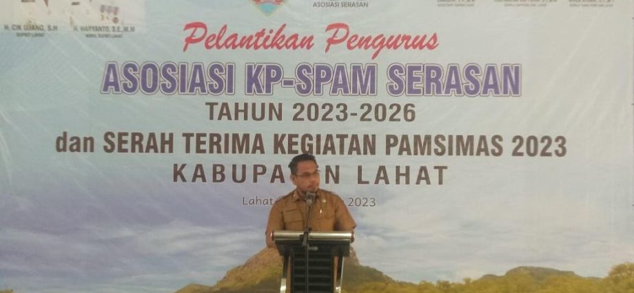 Lahat, SKI – Wakil Bupati Lahat, H Haryanto SE MMBA Secara Resmi melantik Pengurus Asosiasi Pengelola Spam Perdesaan Serasan Periode 2023 – 2026 Sekaligus Serah Terima Kegiatan Pamsimas TA 2023.