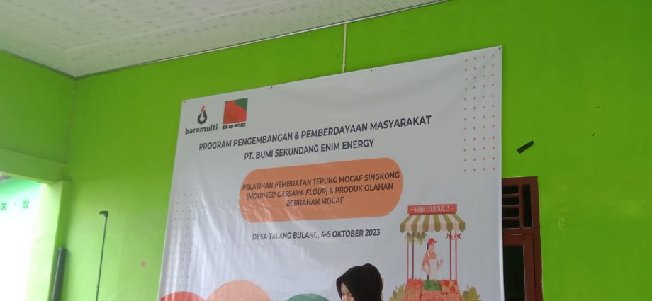 “Ketua PKK Desa Talang Bulang Hartini Meriadi Mengucapkan terima kasih kepada PT.BSEE, Dengan adanya kegiatan Program Pelatihan Pembuatan Tepung Mocaf Singkong semoga bermanfaat dan menambah motivasi masyarakat Desa Talang Bulang bisa menjadi nilai jual untuk kita.