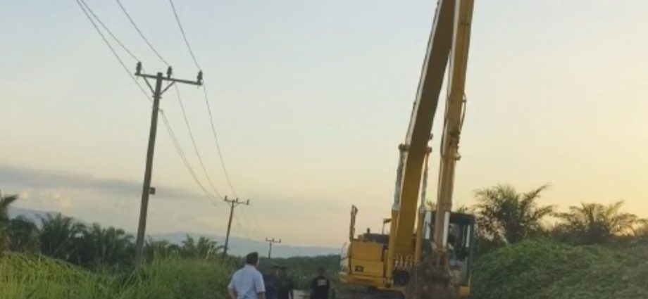 ” Dikatakannya.”Sekitar 3 Kilo Meter (KM) masuk Jalan Cor Beton,dirinya berpapasan dengan Alat Berat (Excavator) Kebun Milik PT.SMS melintas lewat jalan Cor Beton yang baru di bangun oleh Pemerintah Daerah (Pemda) Kabupaten Lahat Tahun Anggaran (TA) 2023 dari Simpang Beringin Jaya sampai Desa Beringin Jaya.