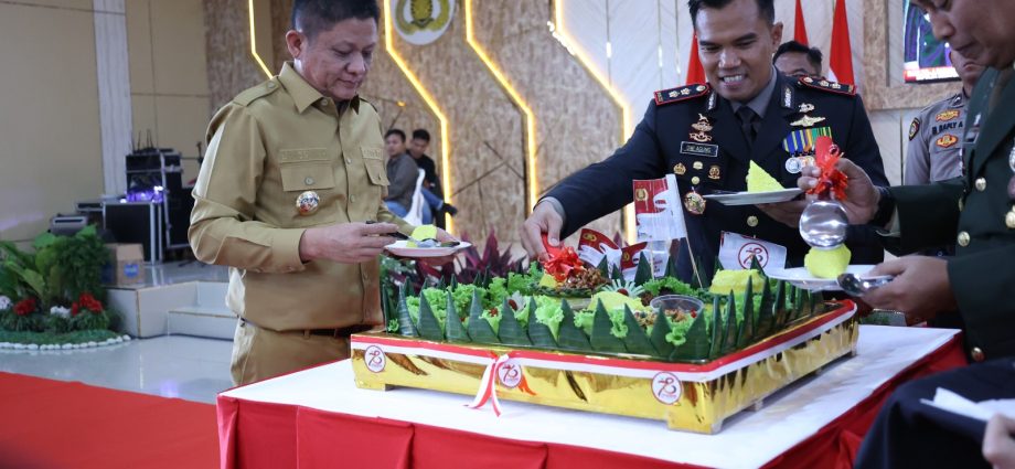 Oku timur, SKI- Setelah mengikuti rangkaian upacara peringatan HUT Bhayangkara ke-78, Bupati OKU Timur Ir. H. Lanosin, M.T. menghadiri acara Syukuran Hari Bhayangkara ke-78 di Aula Wicaksana Laghawa Polres OKU Timur. Senin, 01 Juli 2024.Syukuran Hari Bhayangkara ke-78 ini ditandai pemotongan tumpeng oleh Kapolres OKU Timur AKBP. Dwi Agung Setyono, S.I.K., M.H. bersama Bupati OKU Timur Ir. H. Lanosin, M.T. dan Danpuslatpur Brigjen TNI Suparlan Purwo Utomo.Pada kesempatan ini, Bupati OKU Timur Ir. H. Lanosin, M.T. menyampaikan salah satu visi dan misi dari OKU Timur adalah tentang keamanan.”Sejak pertama OKU Timur berdiri, masalah keamanan selalu menjadi salah satu visi dan misi Bupati OKU Timur. Tanpa ada sinergitas dan sistem tentu kedamaian di OKU Timur ini tidak akan pernah tercapai,” tuturnya.Dijelaskan Bupati, masyarakat OKU Timur merasa puas atas kinerja dari Pemkab OKU Timur Forkopimda dan Forkopimda plus, “Tingkat kepuasan masyarakat terhadap pemerintahan secara drastis,” sambungnya.Bupati Enos juga mengucapkan Selamat Hari Bhayangkara ke-78, dikatakannya kolaborasi bersama mampu menjaga stabilitas keamanan dan kenyamanan di Bumi Sebiduk Sehaluan.”Atas nama masyarakat dan Pemerintah Kabupaten OKU Timur, saya mengucapkan selamat Hari Bhayangkara ke-78, terima kasih untuk seluruh kolaborasi dan sinergitas yang telah dilakukan, semoga Presisi tetap terjaga,” tutupnya.Kapolres OKU Timur AKBP. Dwi Agung Setyono, S.I.K. M.H. dalam sambutannya mengaku haru atas terselenggaranya acara syukuran ini.”Ini adalah hari yang membanggakan bagi kami. Kami ucapkan terima kasih atas dukungan dari semua pihak, hingga saat ini tidak kurang dari dukungan dan sinergitas dalam melaksanakan tugas,” ucapnya.Dirinya mengajak semua pihak untuk terus senantiasa menjaga sinergitas dan hubungan terbaik antar lembaga, “Polri milik kita semua, Polri ingin Kamtibnas di Kabupaten OKU Timur terjaga secara kondusif,” tutupnya.Sementara itu, Komandan Puslatpur Brigjen TNI Suparlan Purwo Utomo dalam sambutannya berharap Polri akan semakin maju dan semakin profesional.Selain itu, dirinya mengimbau untuk terus menjaga sinergitas dan mengingatkan untuk tidak menunjukkan ego masing-masing.”Kita jaga sinergistas, kita harus berdiri sama tinggi, jadi tidak perlu menunjukkan ego masing-masing, sekrang kita bersama menjaga Kabupaten OKU Timur. Semoga kita bisa membangun Kabupaten OKU Timur menjadi lebih baik,” tutupnya.Pada momen ini juga dilakukan penandatanganan prasasti oleh Bupati OKU Timur dan Kapolres OKU Timur atas Peresmian Pembangunan dan Renovasi Sarpras Polres OKU Timur Hibah dari Pemkab OKU Timur.(kiwan)