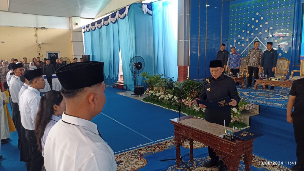 OKU Timur,SKI-Bupati OKU Timur Ir. H. Lanosin, M.T. melantik 1.596 PPPK angkatan 2023 serta 2 orang sebagai PNS Kabupaten OKU Timur. Sabtu,10 Agustus 2024. Bupati Enos mengatakan pelantikan kali ini adalah pelantikan akbar. “Visi dan misi Maju Lebih Mulia hari ini telah diwujudkan dengan dilantiknya 1.596 PPPK dan 2 PNS, semuanya masuk ke visi OKU Timur dimana menciptakan sumber daya manusia yang unggul,” katanya. Dilanjutkannya, “baik di dunia pendidikan dan kesehatan serta teknis membangun infrastruktur yang adil dan merata semua karena sumber daya manusia yang unggul” ungkapnya.