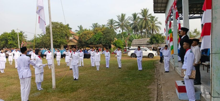 “Upacara digelar di lapangan sepak bola Batang Ari Siku di Desa karta Dewa Sabtu (17/8/2024).