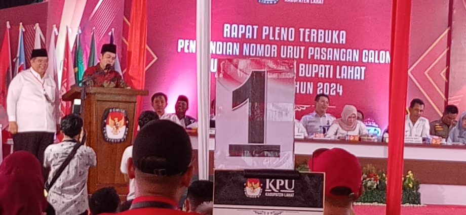 Lahat,SKI – Komisi Pemilihan Umum (KPU) Kabupaten Lahat dalam agenda Rapat Pleno terbuka Pengundian Nomor Urut Pasangan Calon Wakil Bupati dan Calon Wakil Bupati Kabupaten Lahat Pemilihan Tahun 2024