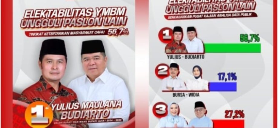 “Alhamdulillah… YM-BM unggul di Kabupaten Lahat, dengan tingkat kemenangan diatas 50%, semoga hasil dari Quick Count ini bertahan hingga penetapan dari KPUD Kabupaten Lahat, aamiin yaa rabbal aalamiin..,” ungkap Jhon salah seorang tim pemenangan Yulius Maulana dan Budiarto Marsul.