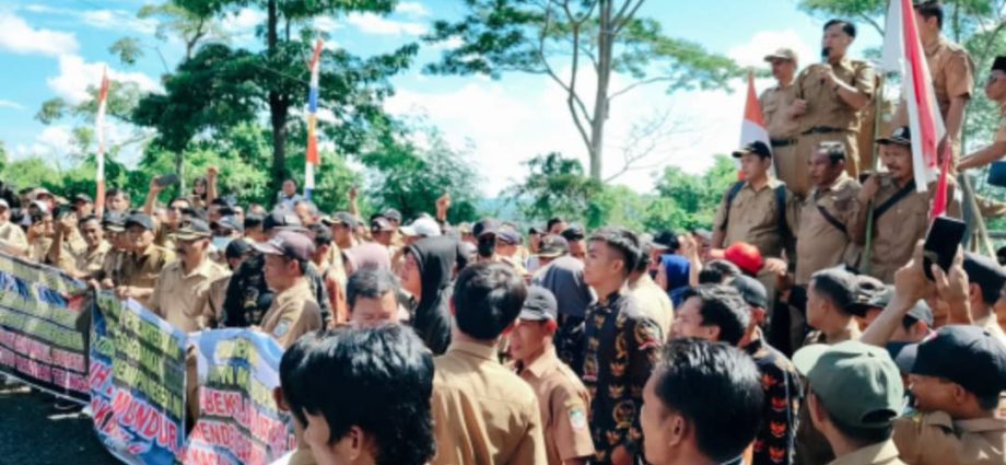 Kabupaten Seluma Bengkulu, SKI – Kecewa sudah 6 bulan tidak gajian Kepala Desa, Perangkat Desa dan Badan Permusyawaratan Desa (BPD) Gelar Aksi Demo.
