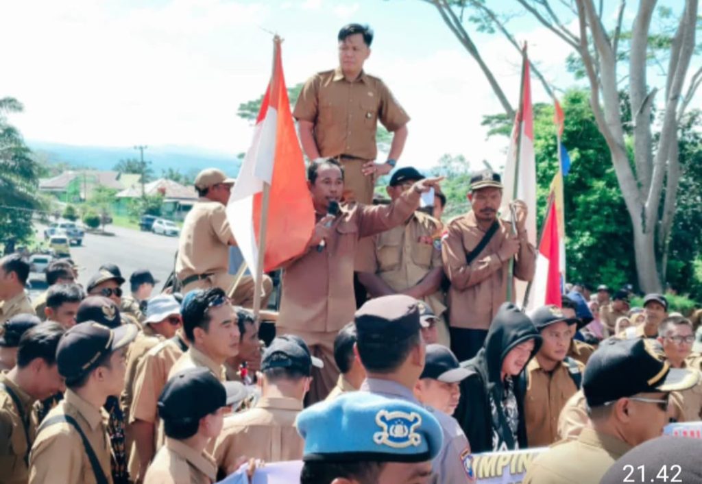Orasi Demo Kepala Desa, Perangkatdan BPD yang berlangsung di depan kantor bupati seluma, Selasa (03/06/2025) justru mendesak Bupati Seluma Mundur dari jabatannya jika tidak mampu mengurus rakyat.