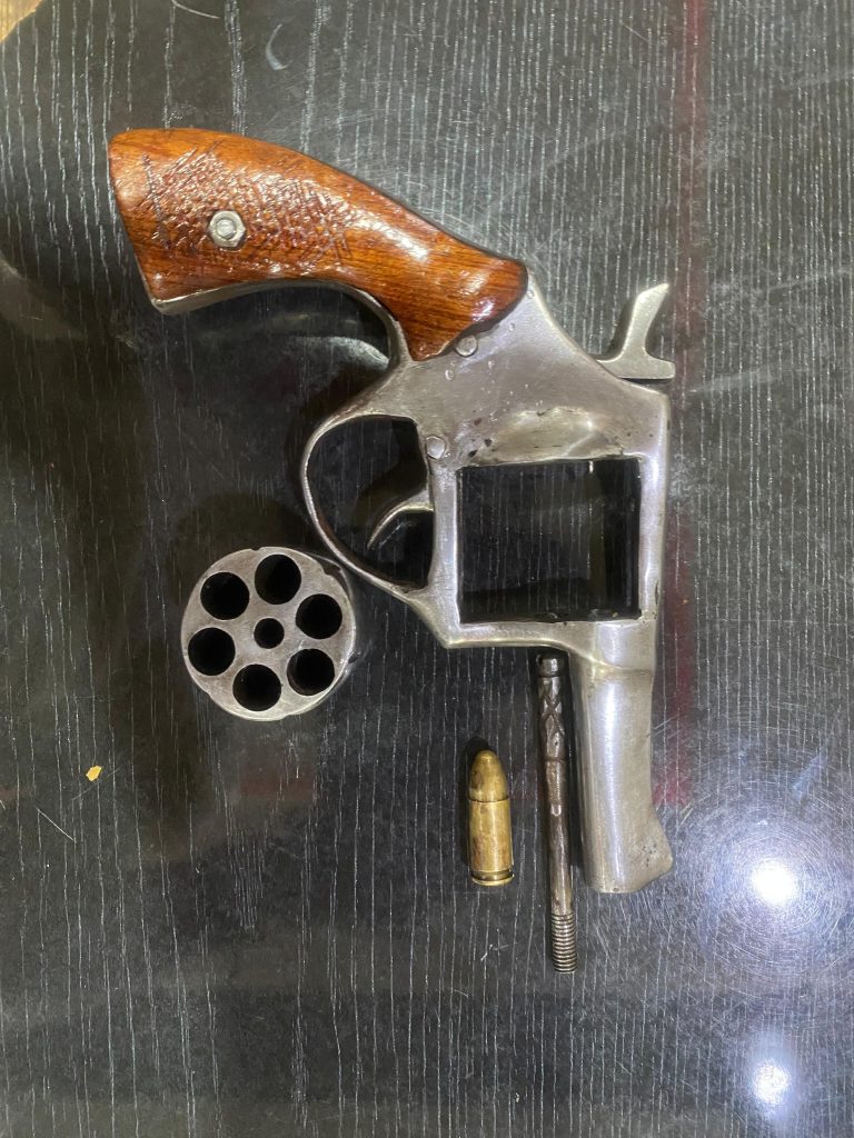 Tersangka ditangkap tanpa melakukan perlawanan.Adapun Barang bukti yang berhasil diamankan berupa :-1(satu) Pucuk Senjata Api Rakitan berbentuk Revolver warna silver bergagang kayu warna coklat.-1(satu) Butir Amunisi Kal.9 MM warna kuning.Selanjutnya Tersangka/Pelaku dibawa ke Polres OKU Timur guna dilakukan pemeriksaan dan Penyidikan lebih lanjut.(Kiwan)