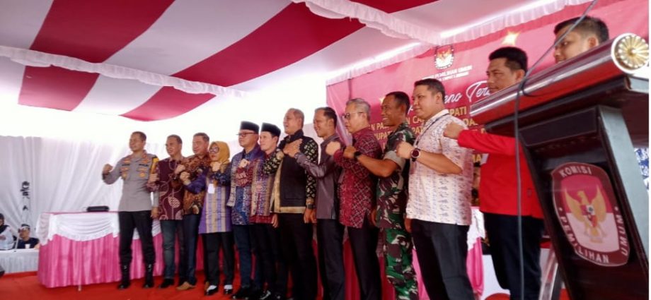 Turut hadir dalam acara tersebut Bawaslu Provinsi Sumatera Selatan, KPU Sumatera Selatan, Ketua DPRD Kabupaten Empat Lawang Darli, Kapolres Empat Lawang AKBP Abdul Aziz Septiadi, Pj Sekda Yulius Sugiantara, Pabung 0405 Lahat, Kepala BNN, Bawaslu Empat Lawang, ketua beserta anggota DPRD Empat Lawang, perwakilan OPD, Kalapas Empat Lawang, camat wilayah Kabupaten Empat Lawang, partai pengusung, tim simpatisan, tim pemenangan, ormas, dan Masyarakat. (Editor Dharmawan,SE/Red/Tim)