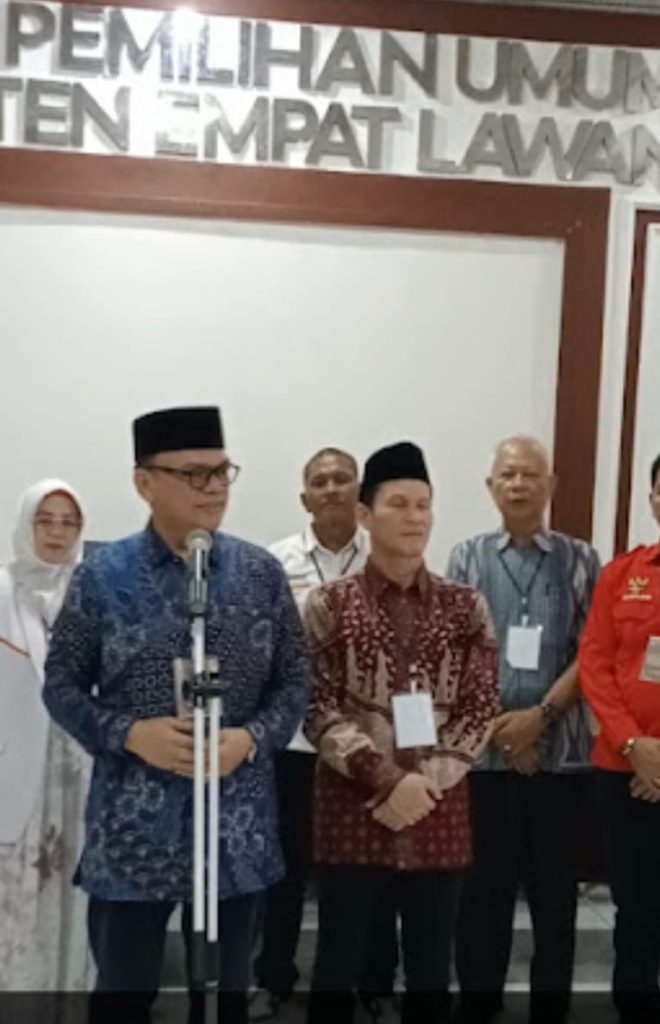 Eskan Budiman Ketua KPU Empat Lawang membacakan putusan rapat pleno terbuka yang merupakan turunan dari KPU RI. Pasca putusan Mahkamah Konstitusi (MK) tersebut, KPU menetapkan pasangan Calon nomor urut 02, Dr. H. Joncik Muhammad yang berpasangan dengan Arifa’i, sebagai Bupati dan Wakil Bupati terpilih Kabupaten Empat Lawang periode 2025–2030.
