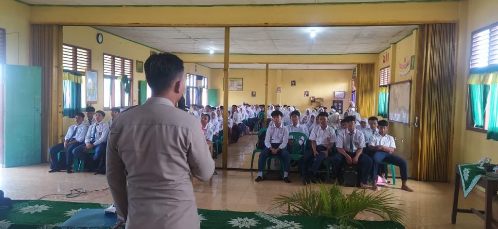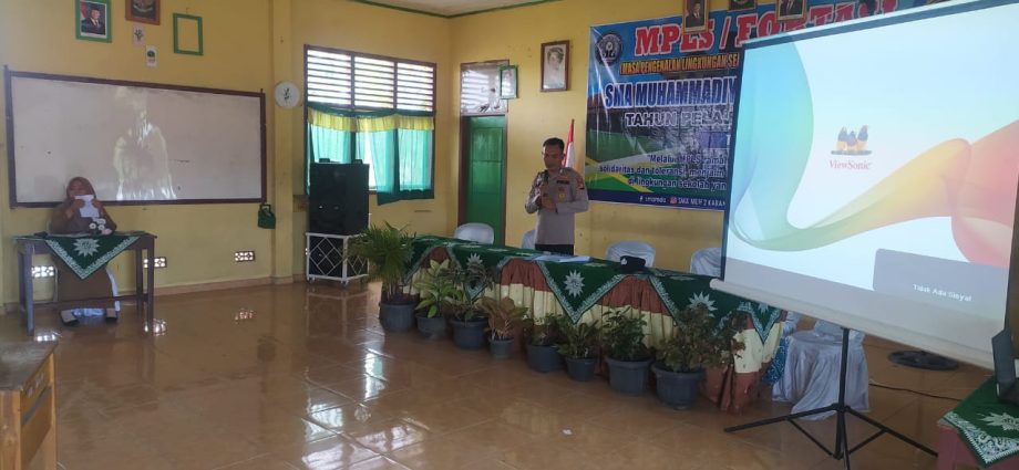 OKU Timur, SKI- Polres OKU Timur Melalui Polsek BMT melakukan Giat Sosialisasi / Penyuluhan Bahaya Narkoba, Kenakalan Remaja, Judi Online dan Pengetahuan Berlalu Lintas dalam Acara MPLS ( Masa pengenalan lingkungan sekolah ) di SMA Muhammadiyah 2 Karang Tengah Desa Karang Tengah Kec.Buay Madang Timur pada hari Selasa (15/07/2025).