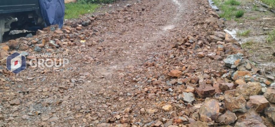 Pantauan di lapangan menunjukkan kondisi jalan masih didominasi batu kasar. Di beberapa titik, genangan air terlihat mengisi bagian jalan yang tidak rata, sehingga dikhawatirkan dapat mempercepat kerusakan dan membahayakan pengguna jalan, terutama saat hujan.