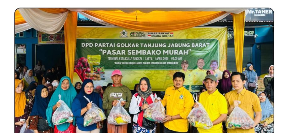 KUALA TUNGKAL, Suarakeadilanindonesia.id — Kepedulian terhadap kondisi ekonomi masyarakat kembali ditunjukkan Dewan Pimpinan Daerah (DPD) Partai Golkar Kabupaten Tanjung Jabung Barat (Tanjab Barat). Ketua DPD Partai Golkar Tanjab Barat Syufrayogi Syaiful, SiP, MH, menggelar Operasi Pasar Murah di Terminal Dalam Kota Kuala Tungkal, Sabtu (11/04/2026).