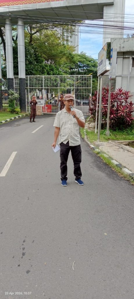 Palembang, SKI- Dewan Pimpinan Pusat LSM Mitra Mabes menggelar aksi unjuk rasa di halaman Kantor Kejaksaan Tinggi Sumatera Selatan, Kamis (23/4/2026).