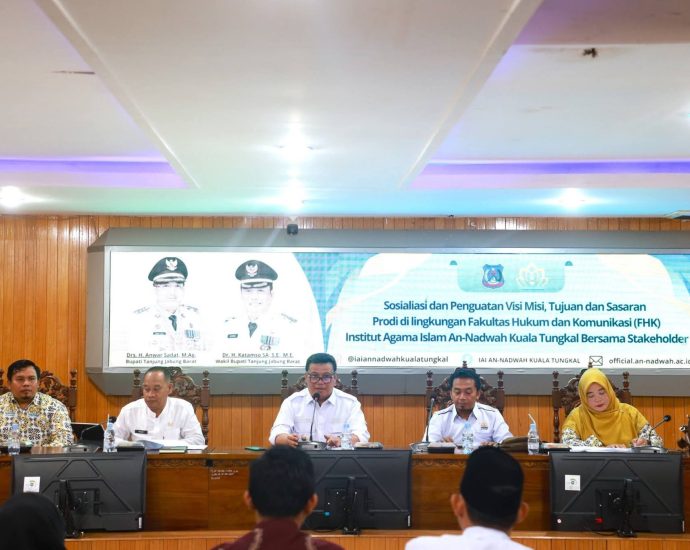 Kuala Tungkal, Suarakeadilanindonesia.id – Wakil Bupati Tanjung Jabung Barat (Tanjab Barat), Dr. H. Katamso, SA, S.E., M.E., menegaskan pentingnya peran Program Studi (Prodi) Hukum Keluarga Islam dalam memperkuat ketahanan sosial daerah. Hal tersebut disampaikannya saat menghadiri kegiatan Sosialisasi Penguatan Visi, Misi, Tujuan, dan Sasaran Prodi di lingkungan Fakultas Hukum danContinue Reading