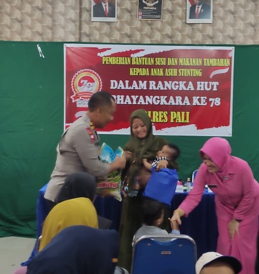 Dalam Rangka HUT Bhayangkara Ke 78,Bhayangkari Cabang PALI Bagikan Bantuan Susu Dan Makanan Tambahan