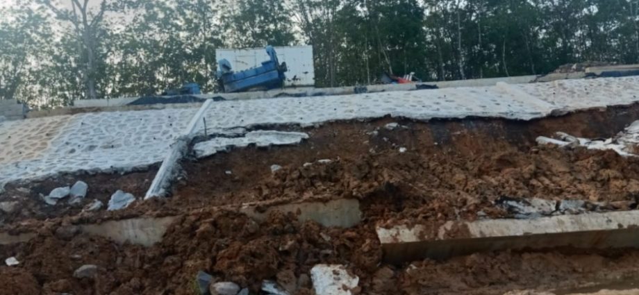 Play Over Bantaian Kini Giliran Bangunan Dinding Penahan Tanah Ambruk Di Karenakan Curah Hujan Begitu Tinggi ,Di Duga Kekurangan Volume
