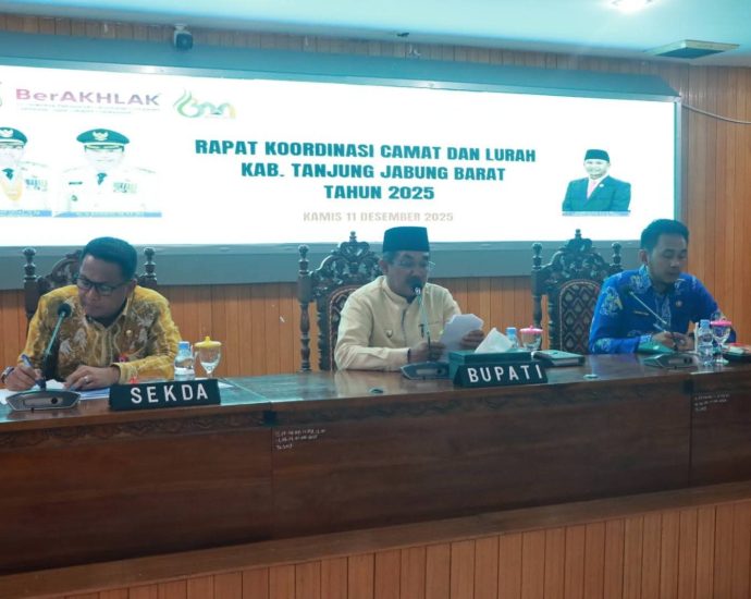 Kuala Tungkal, Suarakeadilanindonesia.id – Bupati Tanjung Jabung Barat (Tanjab Barat), Drs. H. Anwar Sadat, M.Ag., menekankan pentingnya peran camat dan lurah sebagai ujung tombak pelayanan publik dalam Rapat Koordinasi (Rakor) Camat dan Lurah se-Kabupaten Tanjung Jabung Barat yang digelar di Ruang Pola Utama Kantor Bupati, Kamis (11/12/2025). Dalam arahannya, BupatiContinue Reading