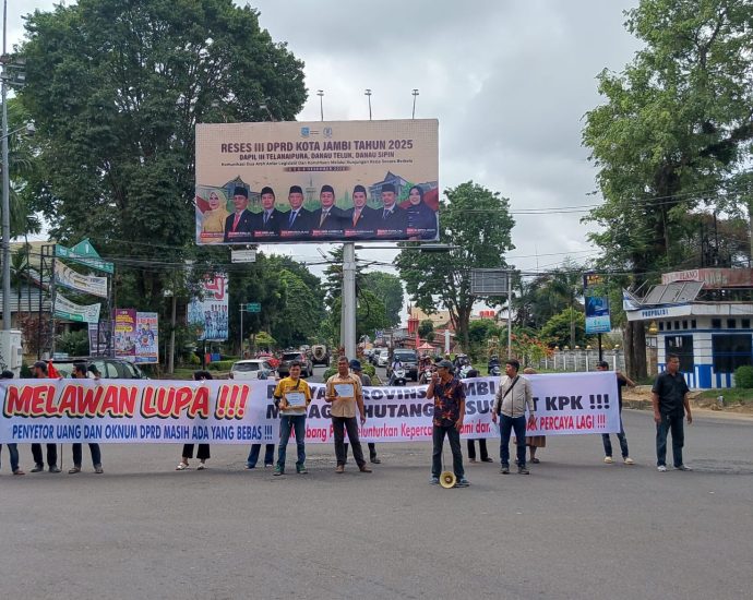 JAMBI, Suarakeadilanindonesia.id – Puluhan massa yang tergabung dalam Jaringan Pemantau Kewenangan (JPK) Provinsi Jambi menggelar aksi unjuk rasa di Simpang Bank Indonesia, Kota Jambi, Selasa (9/12/2025). Aksi damai ini, digelar bertepatan dengan peringatan Hari Antikorupsi Sedunia (Hakordia). Dalam aksinya, massa mendesak Komisi Pemberantasan Korupsi (KPK) segera menuntaskan penyelidikan kasus suapContinue Reading