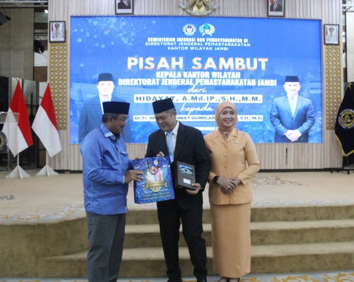 Jambi, Suarakeadilanindonesia.id – Bupati Tanjung Jabung Barat (Tanjab Barat), Drs. H. Anwar Sadat, M.Ag., menghadiri acara Pisah Sambut Kepala Kantor Wilayah Direktorat Jenderal Pemasyarakatan (Ditjen PAS) Jambi yang digelar Kementerian Hukum dan HAM RI melalui Ditjen Pemasyarakatan Kanwil Jambi. Kegiatan berlangsung khidmat di Aula Rumah Dinas Wali Kota Jambi, JumatContinue Reading