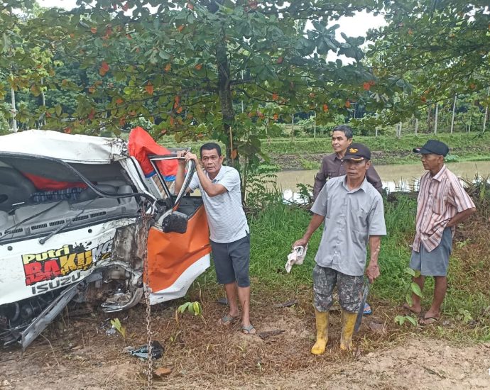 Mobil Ikan Dari Lampung Mengalami Laka Tunggal di Jalan Lintas BK 1