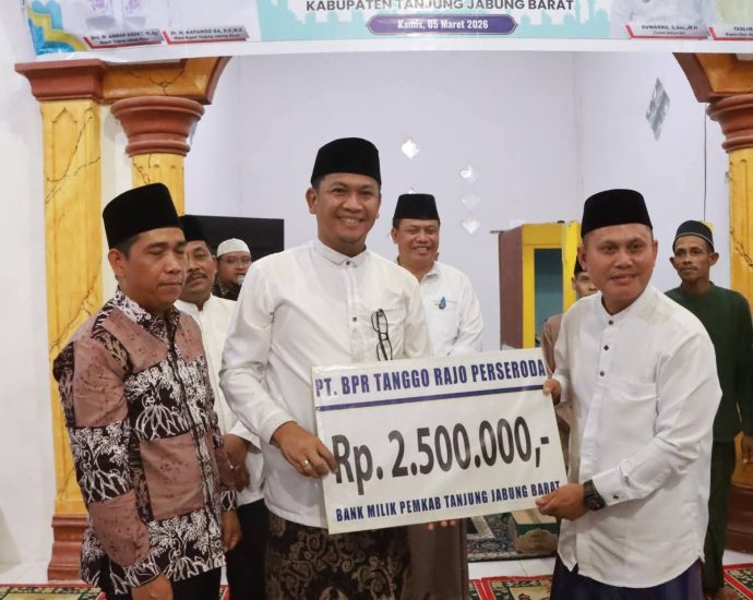 KUALA TUNGKAL, Suarakeadilanindonesia.id – Pemerintah Kabupaten Tanjung Jabung Barat (Tanjab Barat), bersama Tim Safari Ramadan dari Universitas Jambi menggelar kegiatan Safari Ramadan 1447 H sekaligus memperingati malam Nuzulul Qur’an di Masjid Raya Al-Muttaqin Kuala Tungkal, Kelurahan Tungkal IV Kota, Kecamatan Tungkal Ilir, Jumat (06/03/2026). Kegiatan religius yang berlangsung khidmat tersebutContinue Reading