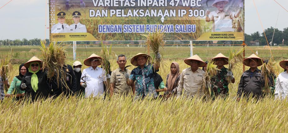 Bupati OKU Timur Ir. H. Lanosin, M.T. Panen Raya Damarean Verietas Inpari 47 WBC, Kamis 12 September 2024 di Desa Sumbersuko Jaya Kecamatan Belitang.