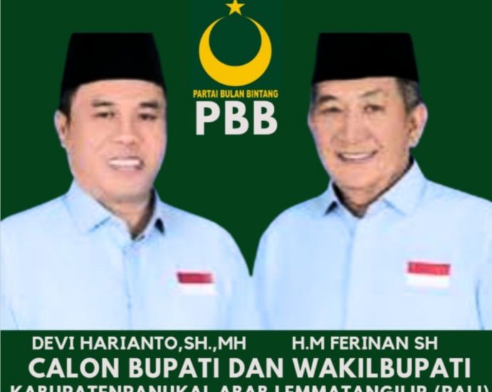 PALI,SKI – Ketua DPC Partai Bulan Bintang Kabupaten Penukal Abab Lematang ilir (PALI), H. Amran, SH bertekad memenangkan Pasangan Calon Devi Harianto dan M Ferdinand setelah resmi mendaftar sebagai Calon Bupati dan Wakil Bupati Kabupaten PALI untuk Periode 2025 – 2029. Paslon Devi-Ferdinand sebelumnya dideklarasikan bersama oleh Partai-Partai Pengusung, yaituContinue Reading