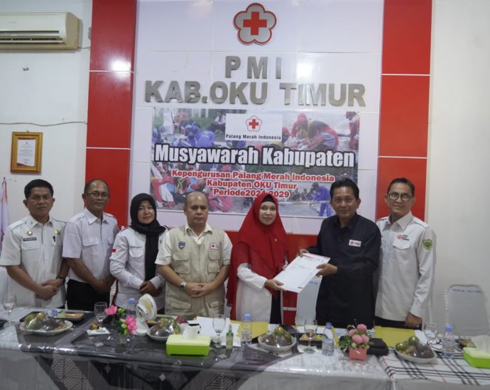 OKU Timur,SKI-Dengan berakhirnya Masa Bakti Kepengurusan PMI Kabupaten OKU Timur Periode 2018-2023, melalui Musyawarah Kabupaten (Muskab) Pada Hari Rabu, 31 Juli 2024 dilakukan pemilihan ketua dan kepengurusan untuk periode 2024-2029 mendatang.Dilaksanakan di Markas PMI OKU Timur, Komplek Pemkab OKU Timur Kota Baru Selatan, Martapura, Muskab ini dihadiri langsung oleh KetuaContinue Reading