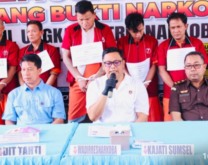 PALEMBANG,SKI – Direktorat Reserse Narkoba (Ditresnarkoba) Polda Sumatera Selatan menggelar pemusnahan barang bukti narkoba, dihalaman kantornya, Rabu (31/7/2024). Pemusnahan 1.552,15 gram sabu tersebut dipimpin Wadir Resnarkoba AKBP Harrisandi Sik, bersama perwakilan dari Kejati Fijar Wijayanto SH, tim dari Bidlabfor, pengacara tersangka dan perwakilan GANN Sumsel serta awak media. Direktur ReserseContinue Reading