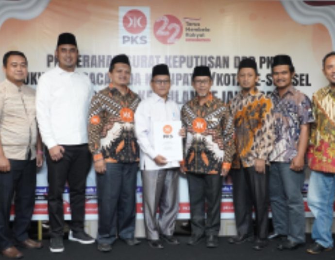 PALEMBANG,SKI – Dewan Pengurus Pusat (DPP) Partai Keadilan Sejahtera (PKS) menyerahkan Surat Keputusan (SK) dukungan kepada Apriyadi untuk menjadi Calon Bupati Muba periode 2024-2029. Penyerahan SK Nomor : 629.8.5.A/SKEP/DPP-PKS/2024 tersebut dilakukan di Hotel Excelton Palembang, Rabu (26/6/2024) siang yang diserahkan langsung Ketua MPW PKS Sumsel KH Tol’at Wafa Ahmad LcContinue Reading